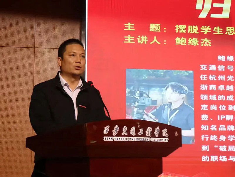 鲍缘杰以自己从轨道交通领域到数字创业的跨界之路为切入点,深入剖析“摆脱学生思维”的核心要义。他回顾了从杭州地铁辞职创业的转型之路,从轨道交通人到数字创业者的角色跃迁,结合电商实践中的突破案例,生动讲述了“打破专业壁垒”的成长密码,鼓励学弟学妹以“我可以学”的开放心态拥抱未知,在试错中积累经验、实现蜕变。同时,他围绕“职场生存与个人品牌打造”主题,分享了从校园到社会的成长策略,其“打破边界、终身学习”的理念引发现场热烈掌声与共鸣。