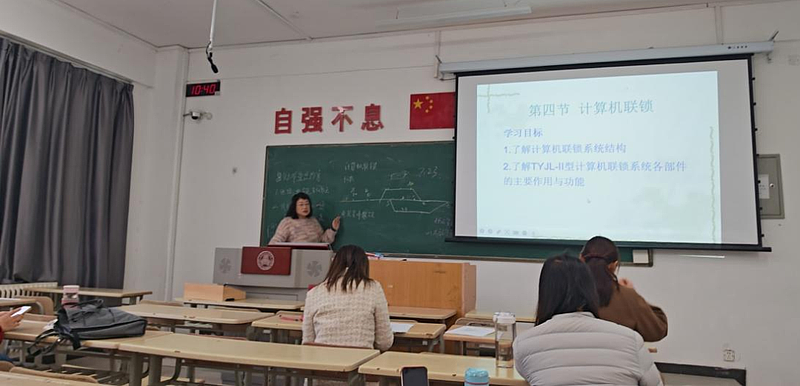 刘民芳率先以“计算机连锁”为主题展开教学,系统讲解了进路与连锁的基本概念及其在铁路信号系统中的关键作用。她通过图示与实例相结合的方式,清晰梳理了进路的定义、分类及其与信号控制的逻辑关系,并深入分析了连锁的基本原理与实现方式。在“信号平面布置”部分,刘民芳结合典型站场图,详细说明了信号机、轨道电路等设备的布置原则与方法,通过实际案例强调了布置过程中需注意的技术要点与安全规范,为课程教学提供了逻辑严谨、图文并茂的示范样本。