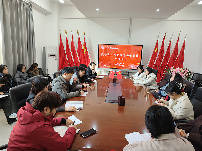 会上,李沙沙传达了学校安全稳定工作会议精神,并就人身安全、岗位安全、心理安全等方面做了强调。要求指导教师在日常实习指导中针对过程中可能出现的安全隐患全面的排查和教育。指导老师需摸清实习生底数,掌握学生在岗状态及后续规划,实习生心理健康与劳动保护,关注学生从学校到社会的心态变化并加强疏导。