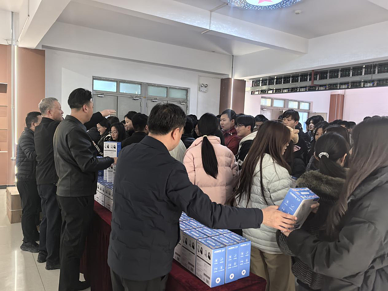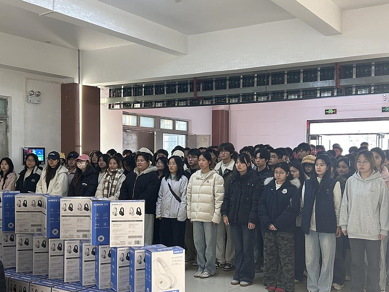 活动现场,张科强发表了热情洋溢的讲话。他指出,英语四六级成绩不仅是衡量学生英语能力的重要标尺,更是未来升学和就业的重要加分项。他鼓励同学们树立明确的备考目标,合理规划复习时间,以饱满的热情和坚定的信心迎接考试。同时,张斌强调,此次发放耳机是学院助力学生备考的一项具体举措。学院将陆续组织四六级备考经验分享会、模拟测试等系列活动,为同学们搭建更优质的备考平台。他寄语全体备考学子,要以此次活动为契机,调整好学习状态,查漏补缺、攻坚克难,在即将到来的四六级考试中取得理想成绩,为个人成长和学院发展增添光彩。