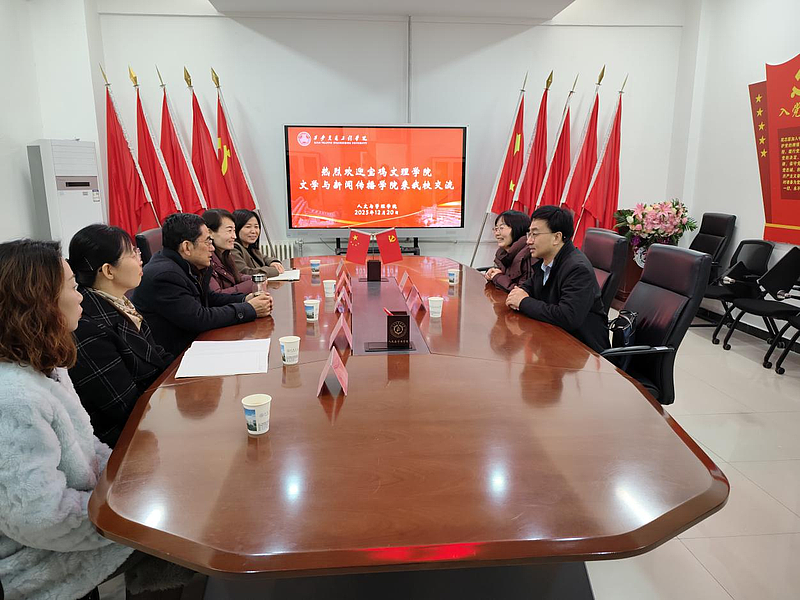 12月19日,宝鸡文理学院文学与新闻传播学院院长孟改正一行来必赢交流。人文与管理学院领导班子参与了交流活动。