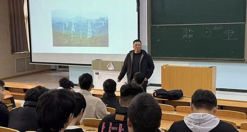 郑黎明围绕“电网的‘高速公路’——新型输电技术与装备前沿”作专题分享。他以特高压输电、柔性直流输电等关键技术为切入点,重点阐述了新型输电技术在远距离、大容量电力输送中的核心作用,系统介绍了其在服务国家“西电东送”等重大战略中的重要技术支撑。同时,郑老师结合国内外电力装备最新研发成果,进一步拓展了同学们对高端输电装备技术发展趋势的认知视野。