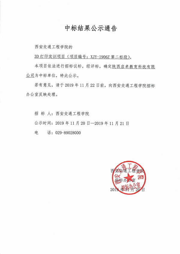 中标结果公示通知