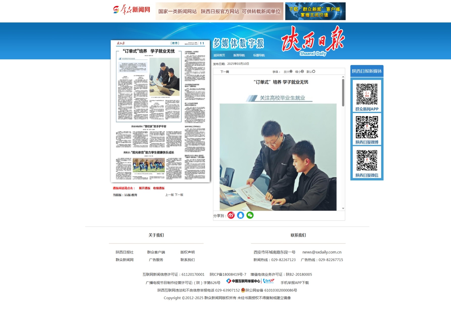 陕西日报:“订单式”培养 学子就业无忧