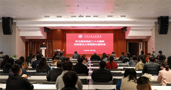 马智勇书记指出,学习宣传贯彻党的二十大精神是当前和今后一个时期全校的首要政治任务。全校上下要以此次宣讲为契机,在全面学习、全面把握、全面落实上持续下功夫,不断推进党的二十大精神入脑入心、走深走实、见行见效。各二级党组织、各单位要切实担起政治责任,结合实际,作出专题部署,制定实施方案,提出具体要求,及时全面准确开展学习宣传;各级领导干部要带头学、以上率下学,积极发挥校院两级党组织理论学习中心组的示范引领作用和基层党支部的主体作用,推动党员领导干部先学一步、学深一层;要充分利用教职工政治学习、组织生活会、学生班团活动、大学生形势与政策教育等组织好学习研讨。在学习中,要联系实际重落实,把学习宣传贯彻党的二十大精神同做好本职工作、促进学风建设、落实本科教学各项评建任务结合起来,下好先手棋,打好主动仗,汇聚起开拓进取的合力,为把学校建设成为特色鲜明的应用型本科高校而努力!