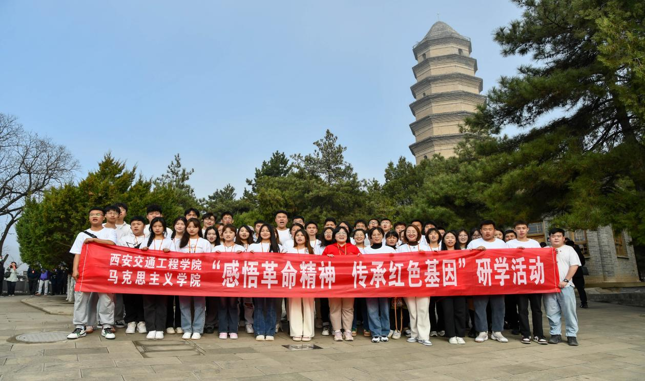 为贯彻落实中共陕西省委教育工作领导小组秘书组中共陕西省委教育工委关于全省教育系统深入学习贯彻习近平总书记在中国人民大学考察时重要讲话精神的通知,以学深悟透习近平总书记重要讲话精神为引领,组建师生研学团队寻访重温习近平总书记重要考察足迹,实地寻访习近平总书记考察过的革命老区、街乡社区、纪念馆、博物馆等地,切身体验党的二十大以来我国经济社会发生的历史性变化,取得的历史性成就,深刻感受习近平总书记的领袖风范和人民情怀,4月1日-2日,马克思主义学院组织部分师生赴延安开展了以“感悟革命精神 传承红色基因”为主题的研学活动。