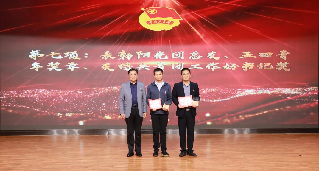 党委书记马智勇为支持共青团工作好书记获奖者颁奖