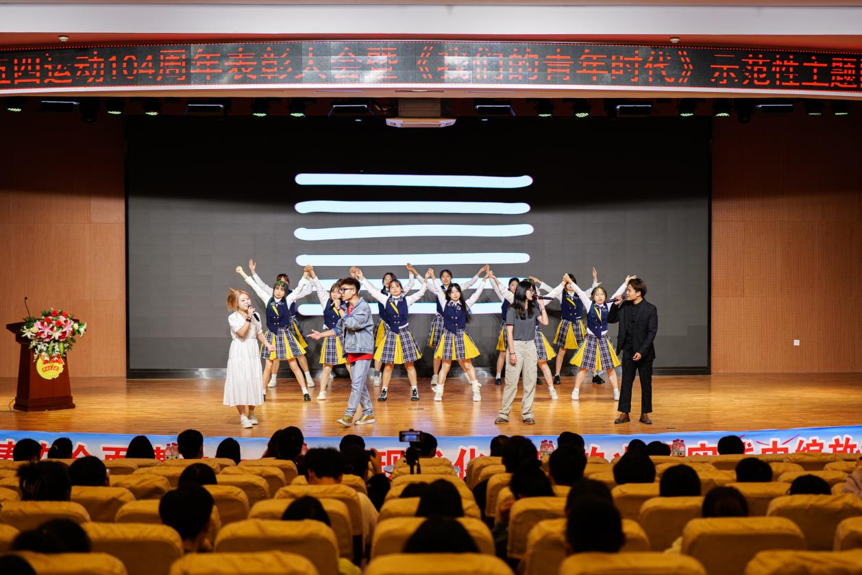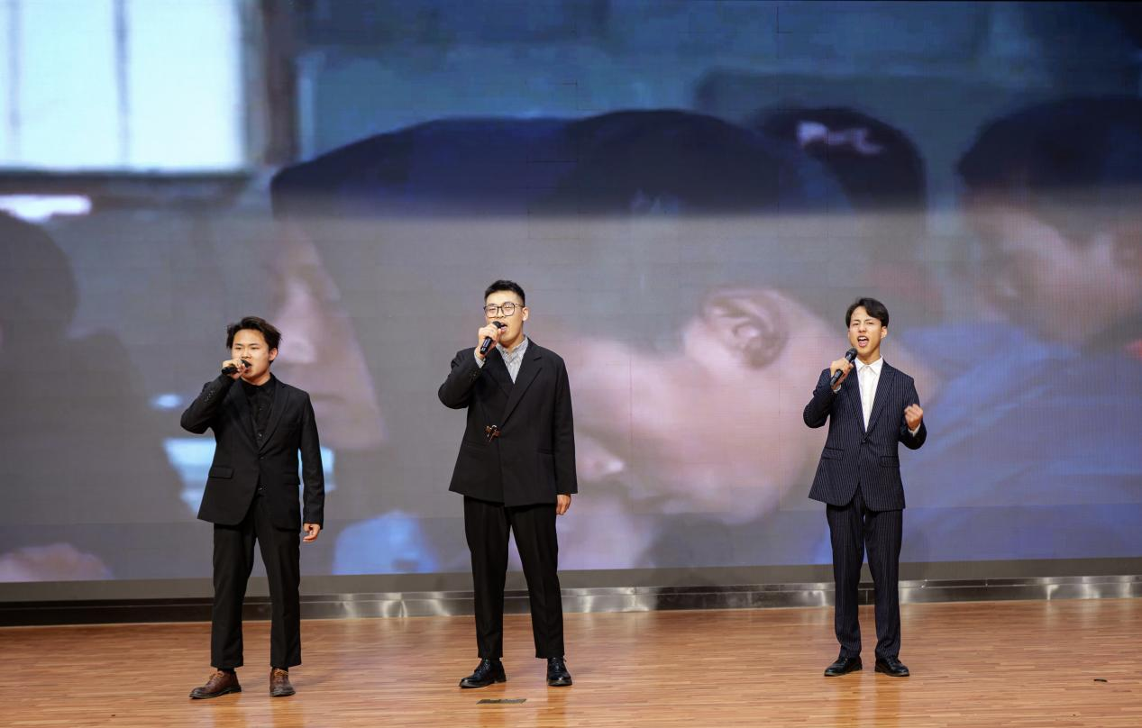 活动上,大学生艺术团和校园文化艺术节获奖选手们还展演了歌曲《身为后浪》、歌伴舞《一起向未来》、情景讲述《跨越时空的对白》等精彩节目,为现场师生带来了一场身临其境的视听盛宴,展现出必赢青年不忘初心,赓续红色血脉,立志民族复兴,携手向未来的青春风采。情景剧《跨越时空的对白》更是以革命先烈的故事为蓝本,以新时代历史发展和先烈的希冀为主线,穿越时空,对话前辈,给予观众沉浸式体验,获得了师生一致好评。