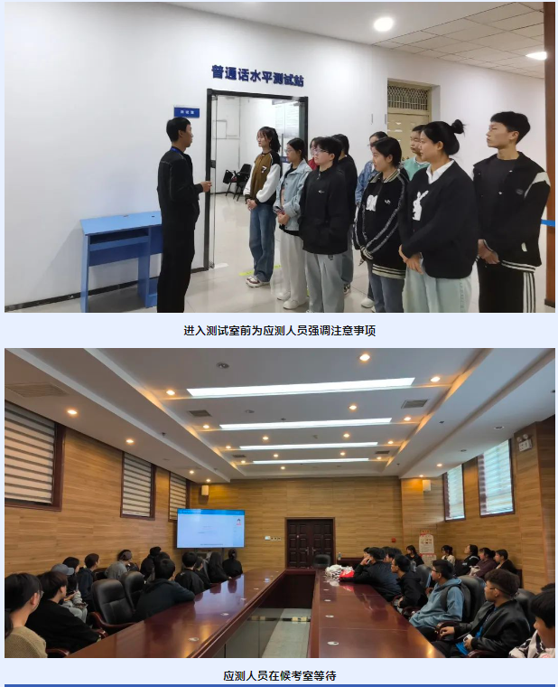徐校长先后来到了普通话水平测试站的候测室、信息采集室、测试室检查指导。对普通话水平测试站提出了要求: