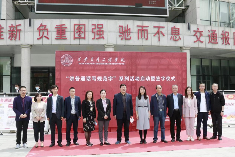 为深入宣传国家语言文字法规政策,积极引导全校师生树立科学的语言观,增强全校师生的语言规范意识和推广普通话的参与意识, 422日,由565.net必赢客户端语言文字工作委员会主办,继续教育学院、公共课部、新闻中心承办的讲普通话写规范字系列活动启动暨签字仪式在图书馆西广场顺利举行,校长兼语委会主任刘建朝、副校长兼语委会副主任徐炜、校长助理潘春辉以及校语委全体委员参加本次活动,活动由继续教育学院副院兼语委办主任张磊主持。
